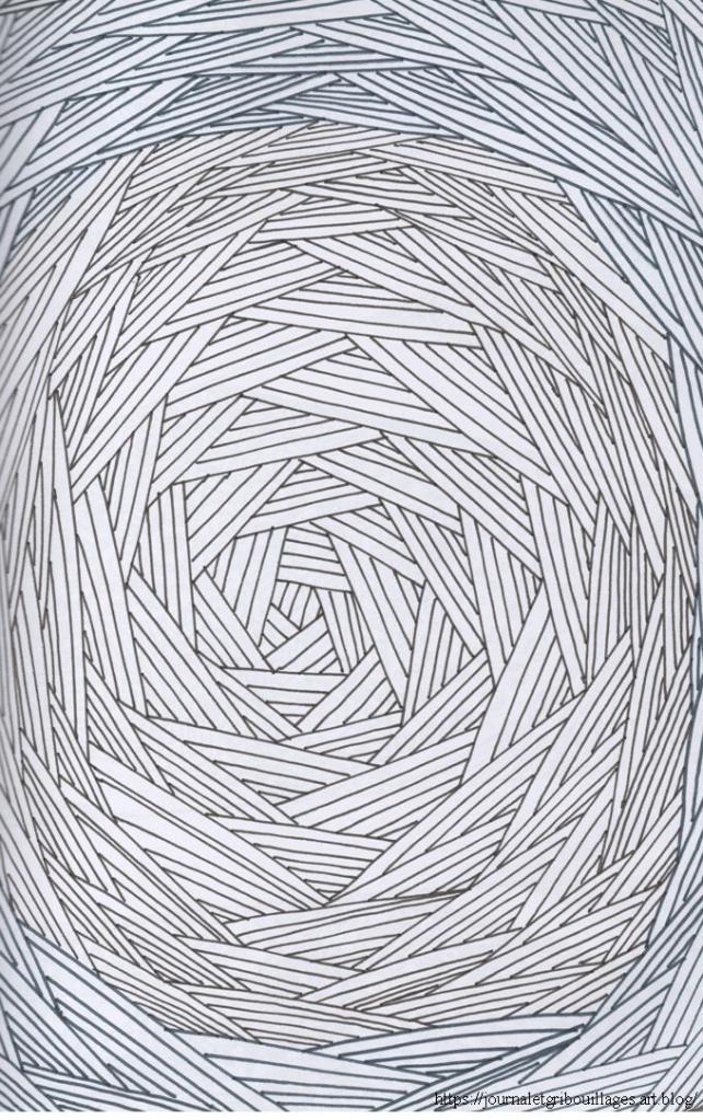 Zentangle ?!? Mais c’est quoi donc ça ? C’est un dessin que l’on fait à main levée dans le but de se détendre en dessinant. C’est souvent un dessin qui a des allures d’illusion optique. Pour ma part, je ne suis pas forcément très attachée à cette partie de la consigne …