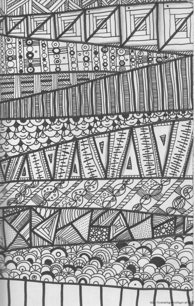 C’est ça la magie du Zentangle … rendre précis, joli, fouillé et détaillé ce qui au départ n’était que brouillon et intuitivité … Et ça fait du bien à l’esprit, ça canalise, ça recentre ce qui partait dans tous les sens.