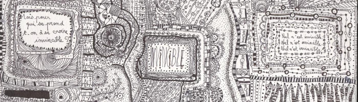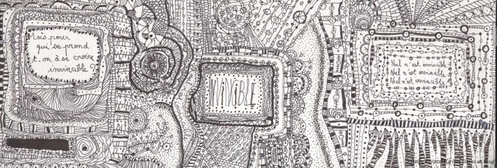 Son titre est Invincible, il correspond à mon état d’esprit au moment où je l’ai fait. Et, même s’il a quelques années, ce dessin me parle toujours autant … je crois que je n’ai pas beaucoup avancé sur la question que je me posais au moment où mon crayon laissait ses traces.