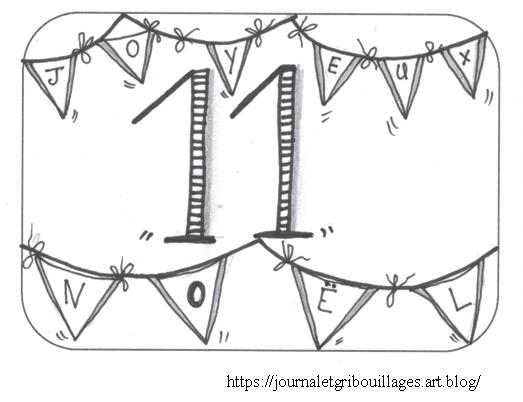 Pour le Jour 11, ce sera des petits fanions de Noël, ça fait festif … c’est esprit guinguette de Noël !!! Concept étonnant en raison de la saison hivernale correspondant à Noël (ajoutons-y les trombes d’eau qui nous tombent dessus façon déluge) mais bon …