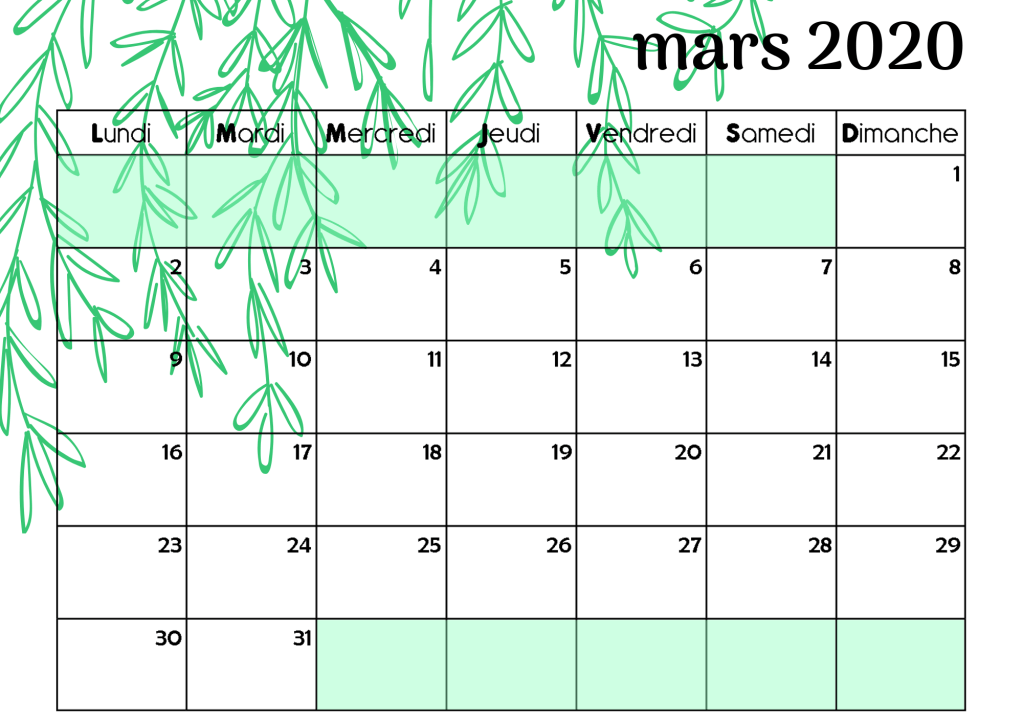 Mars 2020 … te voilà et pour fêter ça avec vous … voici mon petit planning printable en mode printanier :